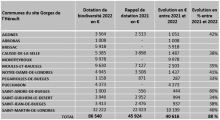 De ces nouvelles régles, découlent les montants suivants pour les communes des sites Natura 2000 gérés par la Vallée de l'Hérault :