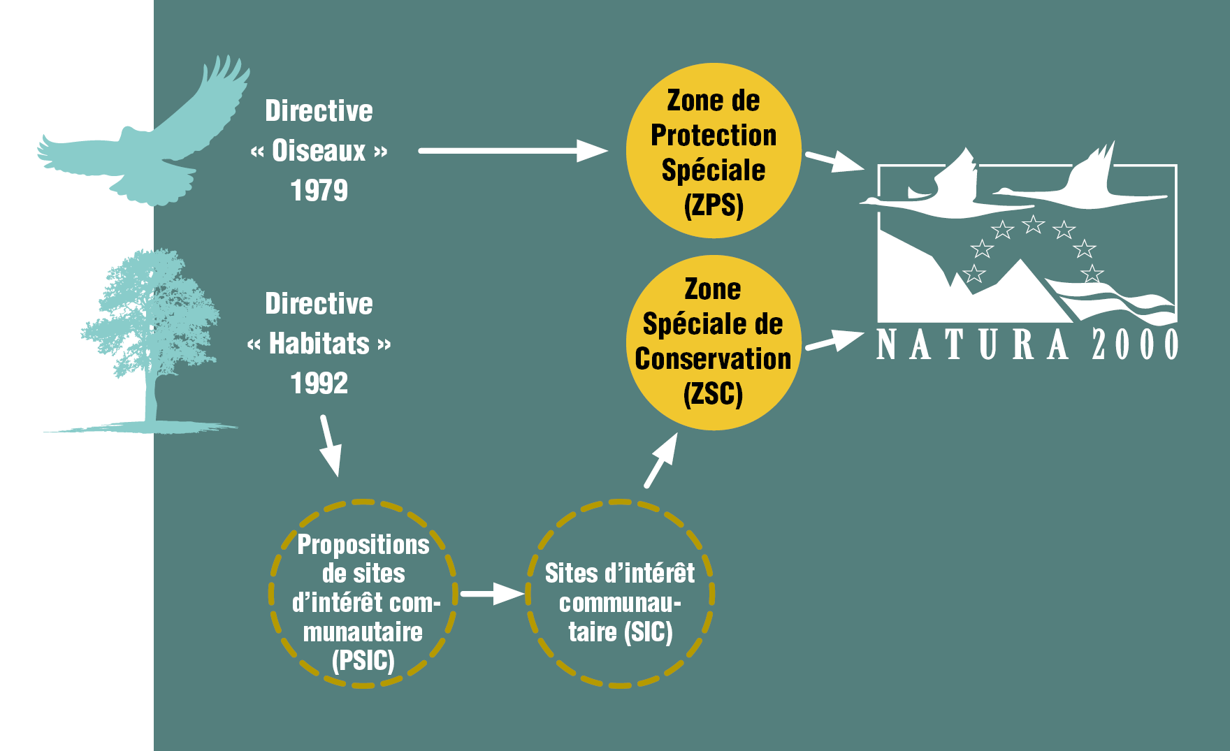 Dans un premier temps, les Etats membres établissent des propositions de sites d’importance communautaire (PSIC) qu’ils transmettent à la Commission européenne. Une fois retenus, les sites doivent être transcrits en droit national dans les Etats membres ; en France, les SIC deviennent des Zones Spéciales de Conservation.